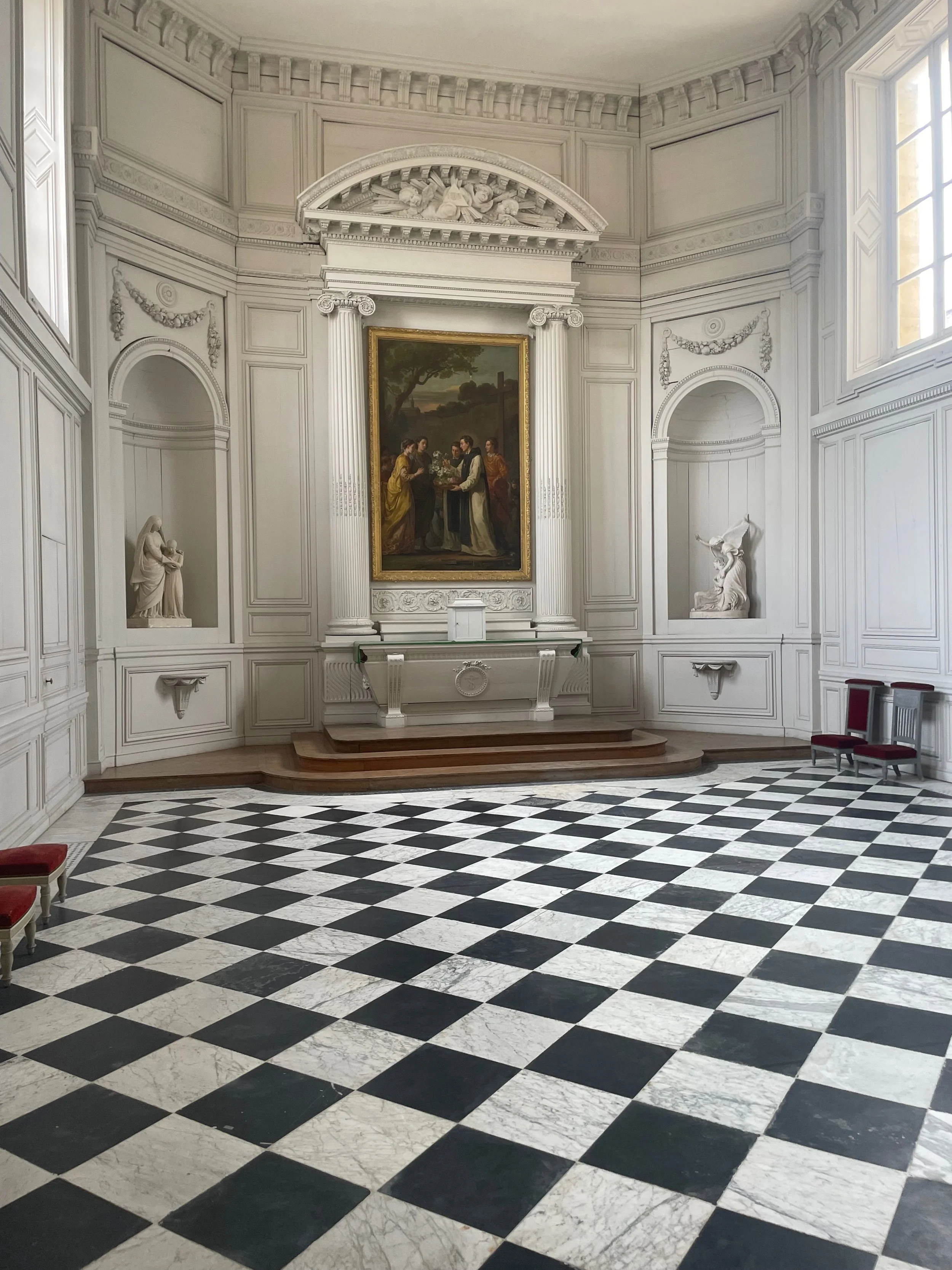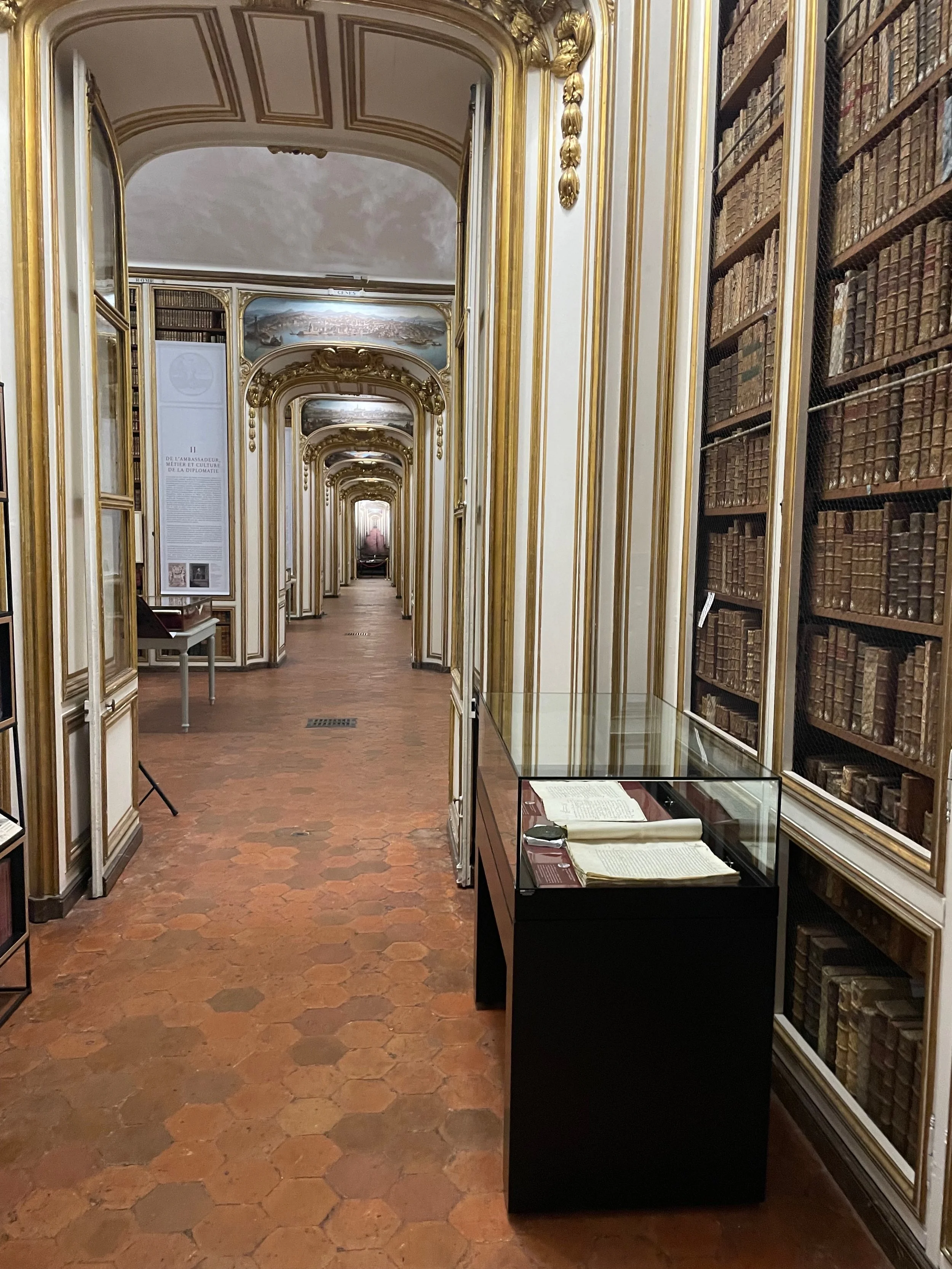 Les salles sont très belles avec les rangées de livres d’époque et les boiseries blanches et dorées. On retrouve immédiatement l’esprit versaillais et plus largement du XVIIIème siècle. En marchant, on ressent tant de la puissance que du recueillement.