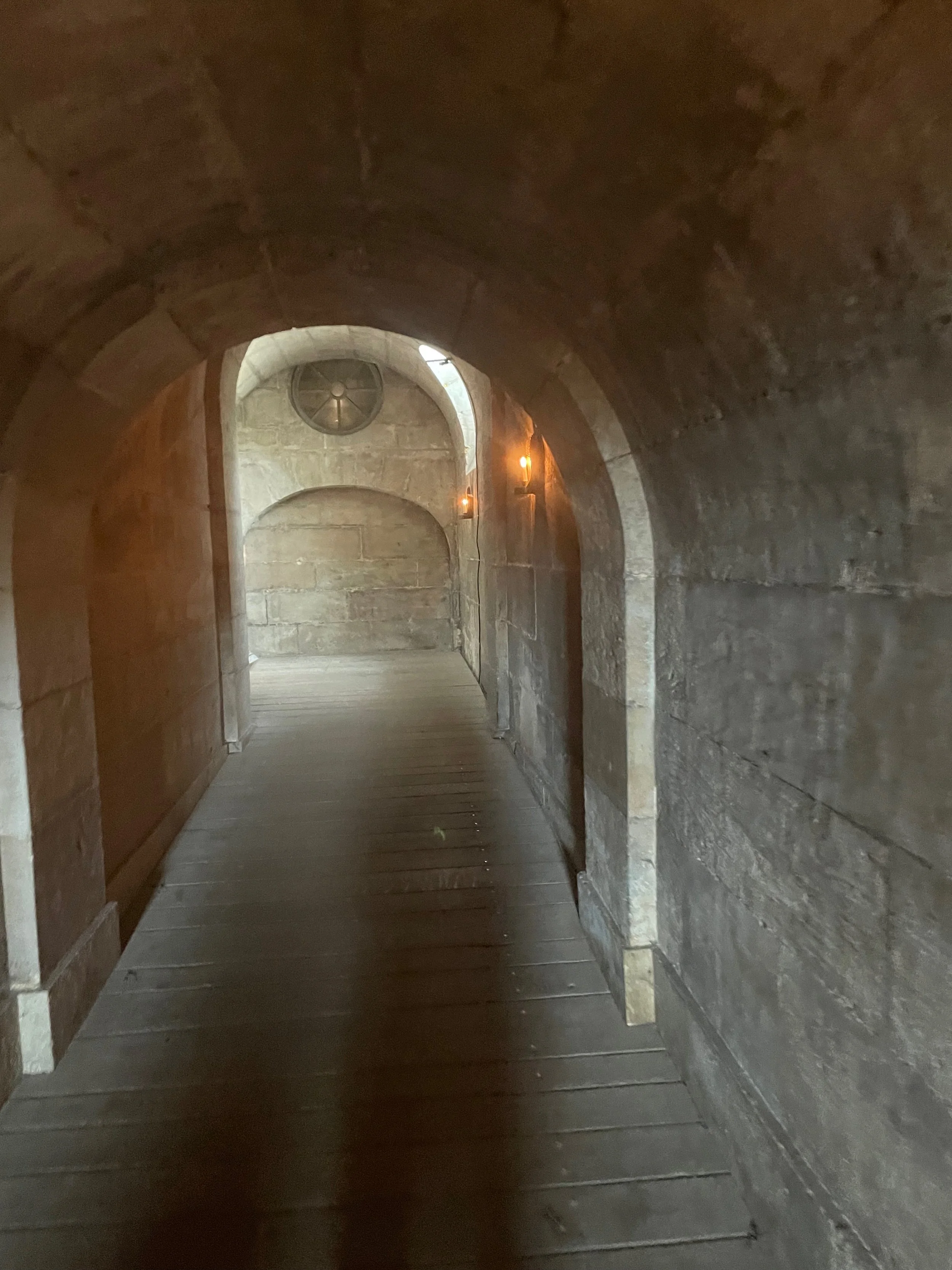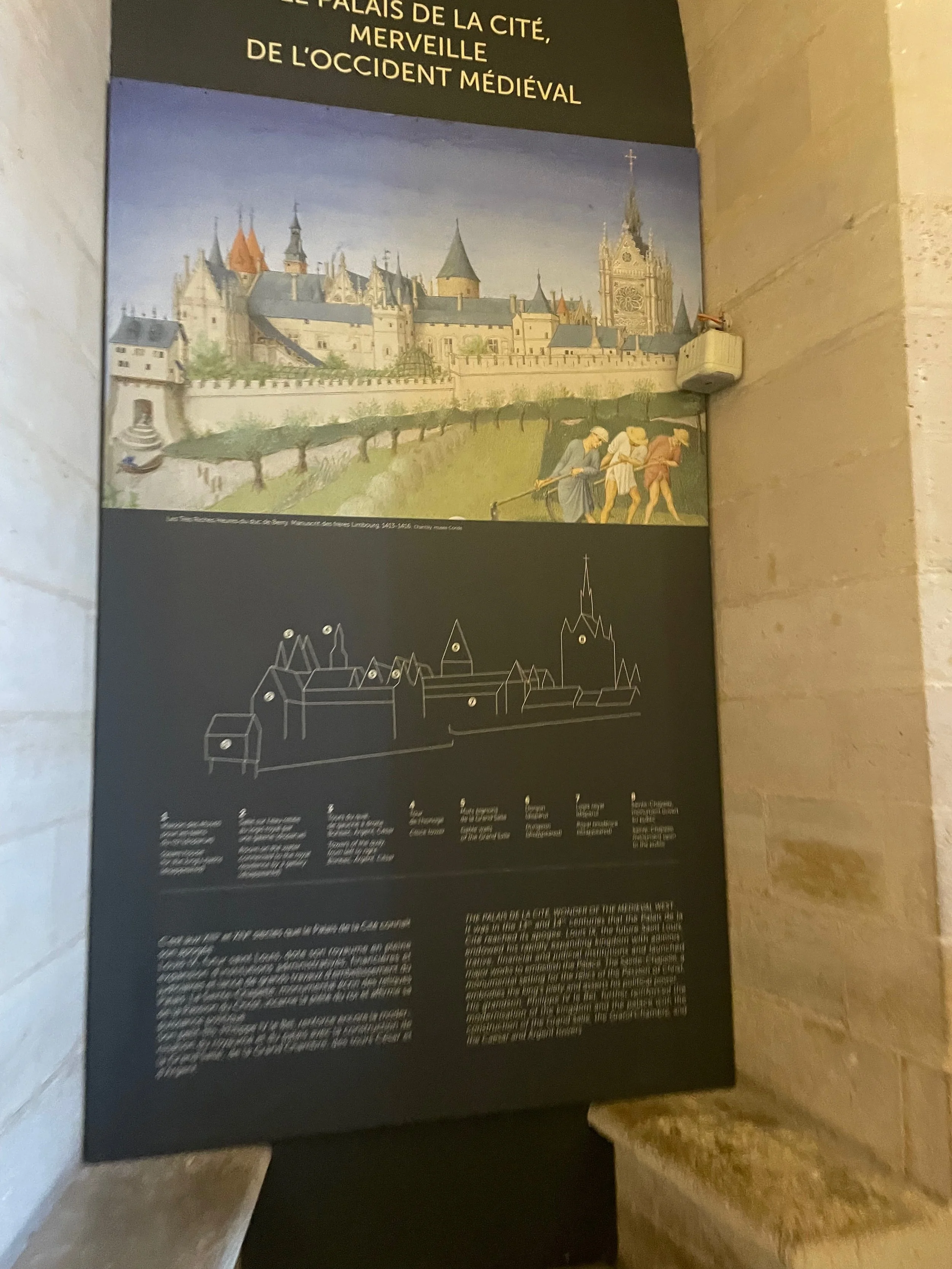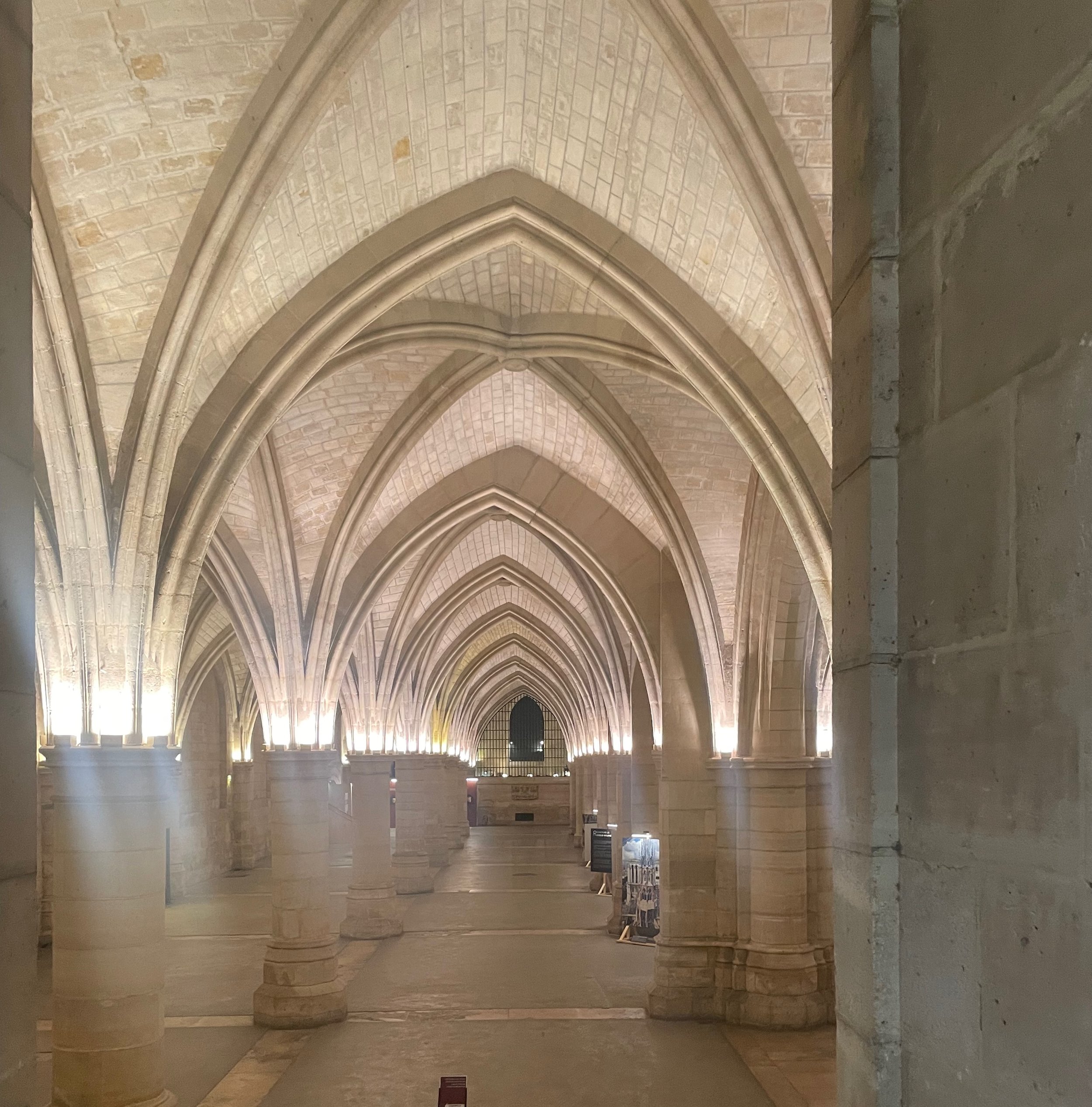 Quand on entre, on voit une immense salle (salle des gens d’armes) avec des voûtes en ogives basses et des colonnes de pierres. Cette salle a tant vu passé de gens et d’évènements : banquets, conseils, prisons..