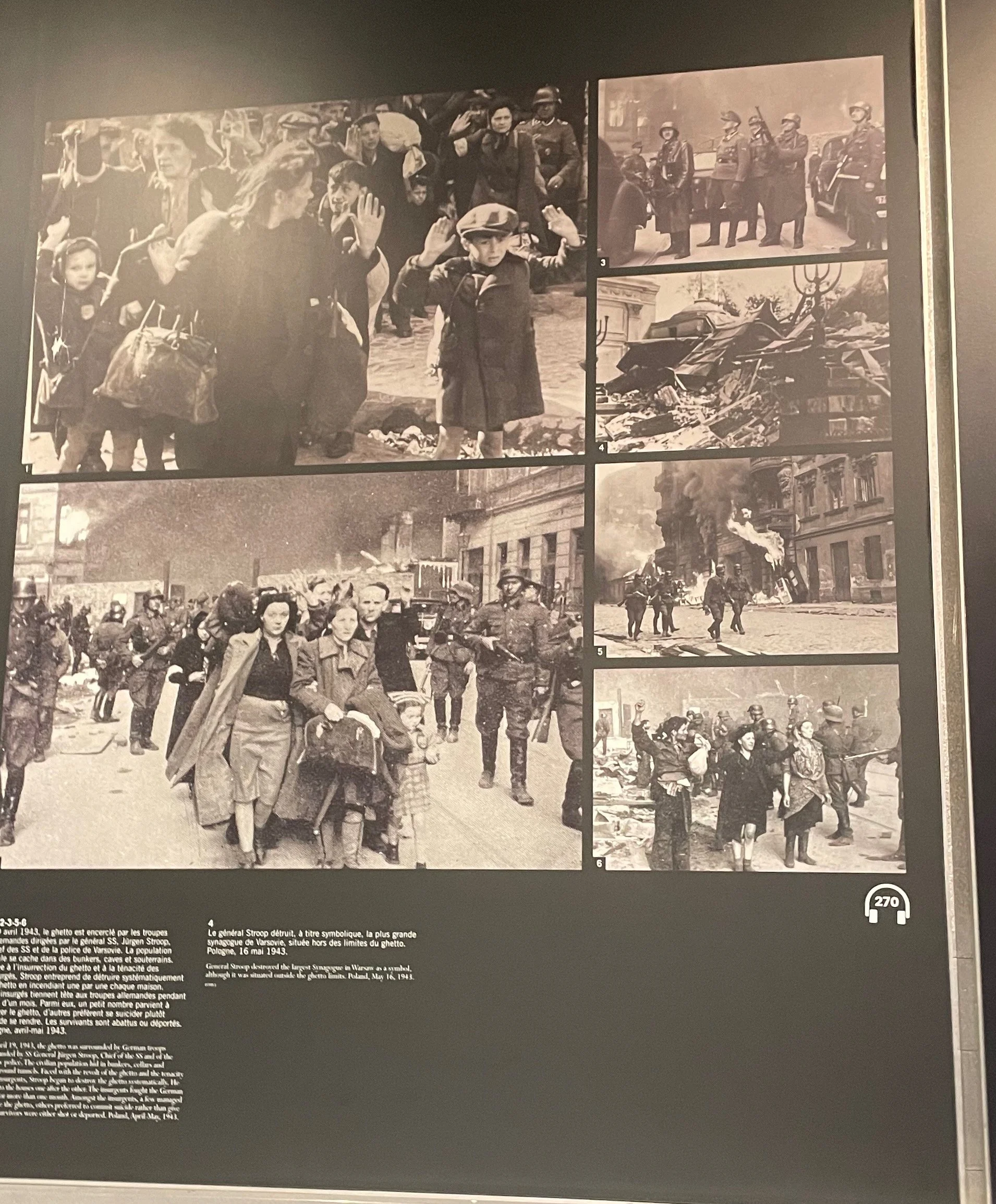 À l’intérieur, j’ai pu voir l’exposition « Visite guidée de l'exposition Comment les nazis ont photographié leurs crimes. Auschwitz 1944 ». Elle est bien faite, mais elle révèle la manière de penser et d’agir des nazis. Leur énergie était orientée vers la déshumanisation et la haine. Ils avaient perdu le lien avec le visage de l’Autre, ils avaient perdu en eux la Fraternité. Valeur au cœur même de l’âme de la France.