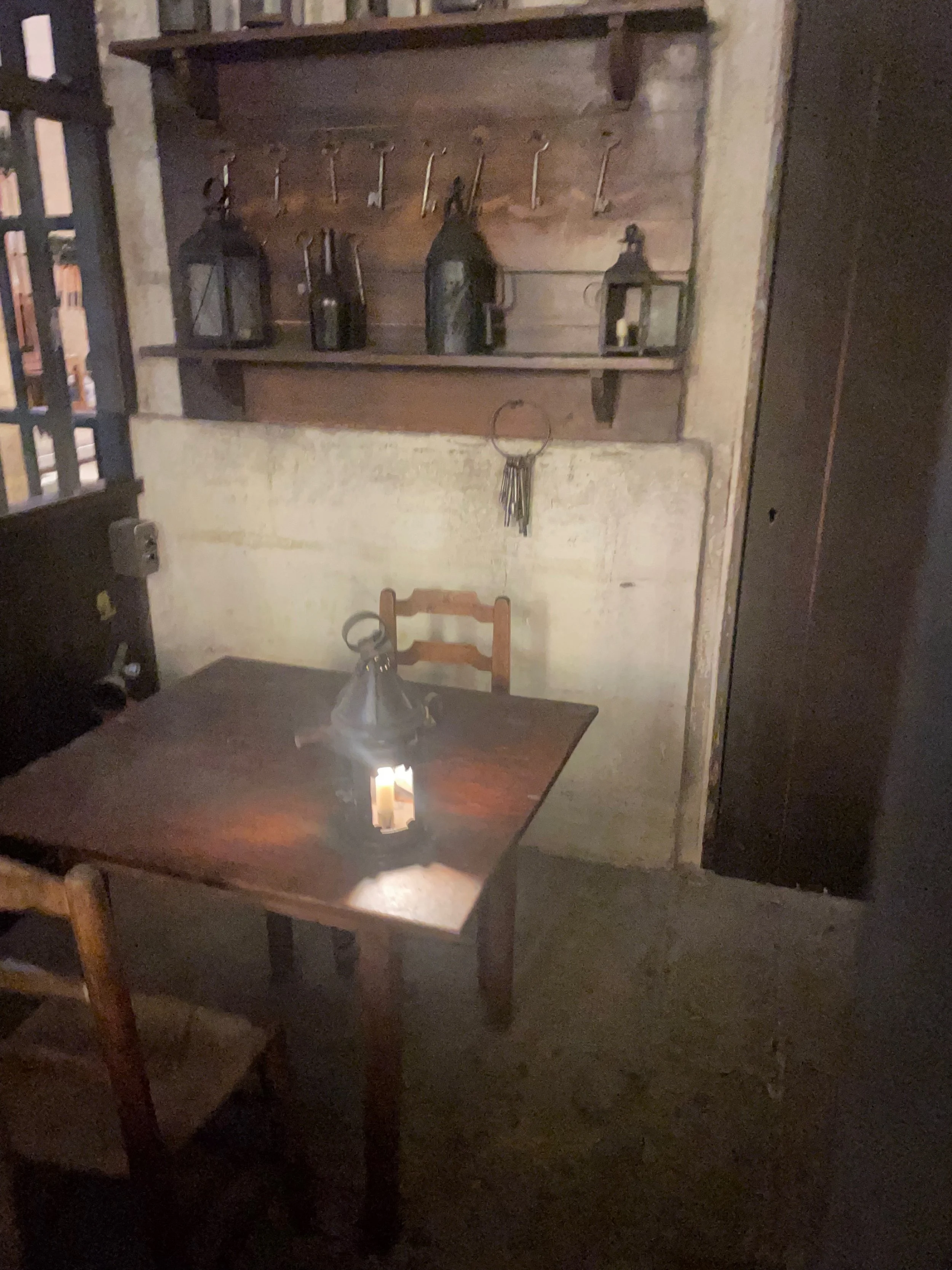 Plus haut on voit les cachots qui n’ont pas fières allures. L’imagination a du mal à saisir ce que cela doit être de rester de longues années enfermé dans un espace si restreint et si peu luxueux.