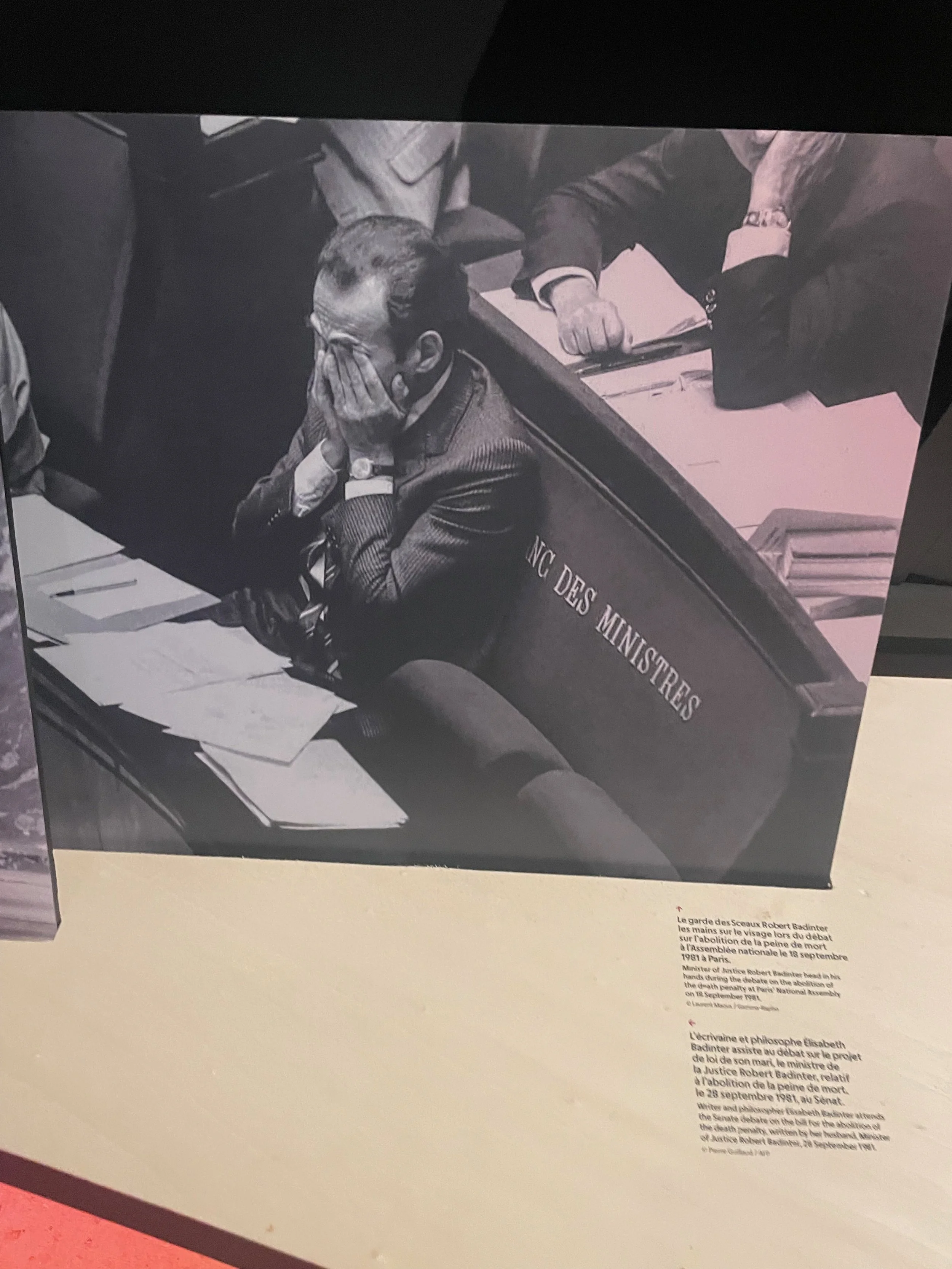Dans la crypte, se trouve une exposition sur Robert Badinter. Que de hauts faits en une vie ! Ses combats ont été grands et porteurs. Son combat notamment contre la peine de mort est aussi dramatique qu’une pièce de théâtre : « A cet instant, j’ai le sentiment d’assumer mon ministère, au sens ancien, au sens noble, le plus noble qui soit, c’est à dire au sens de service ».