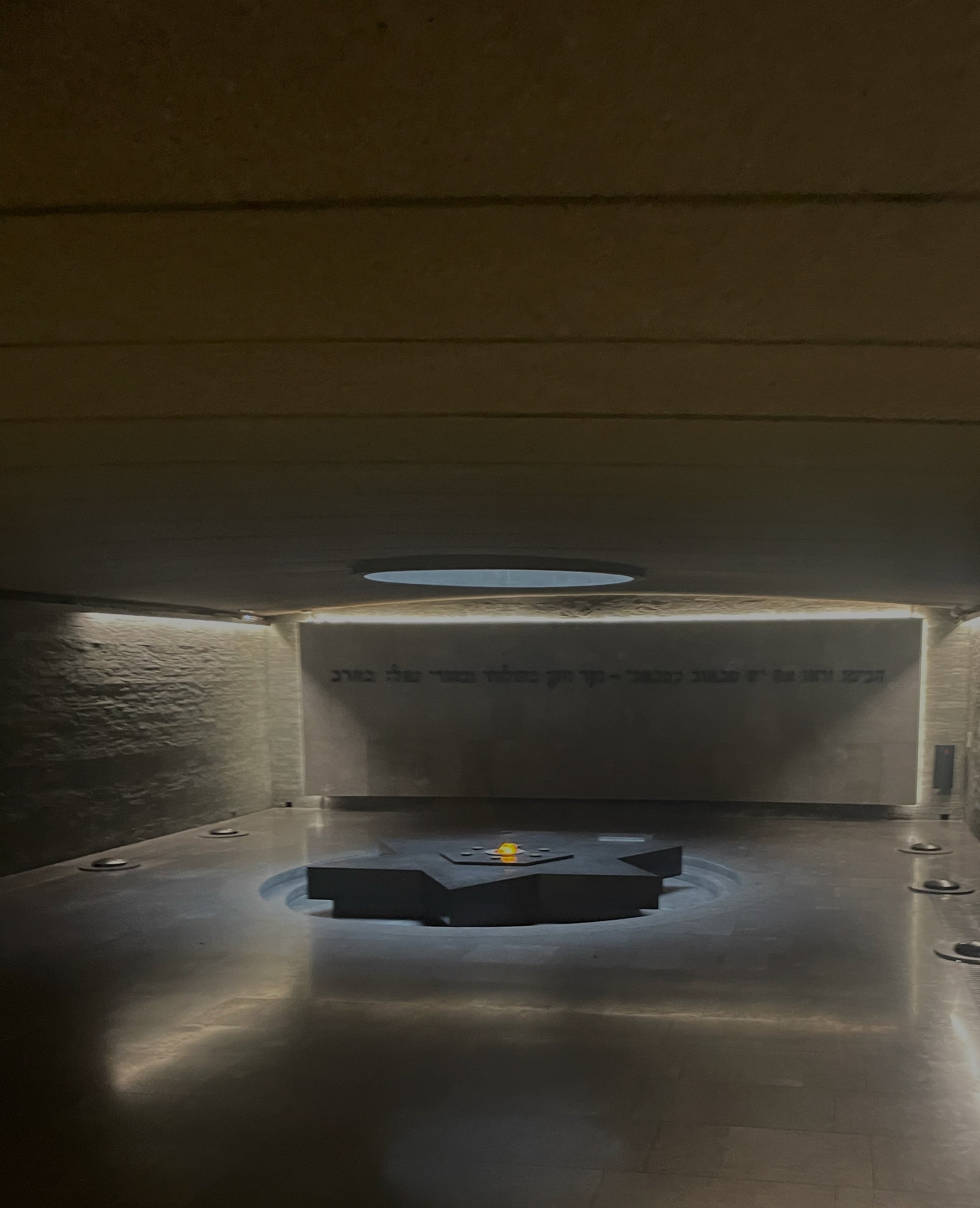La crypte est vraiment impressionnante. Dans une immense salle de marbre noir, une flamme vibre au-dessus d’une immense étoile de David. C’est une flamme d’espoir qui ne s’éteindra jamais.