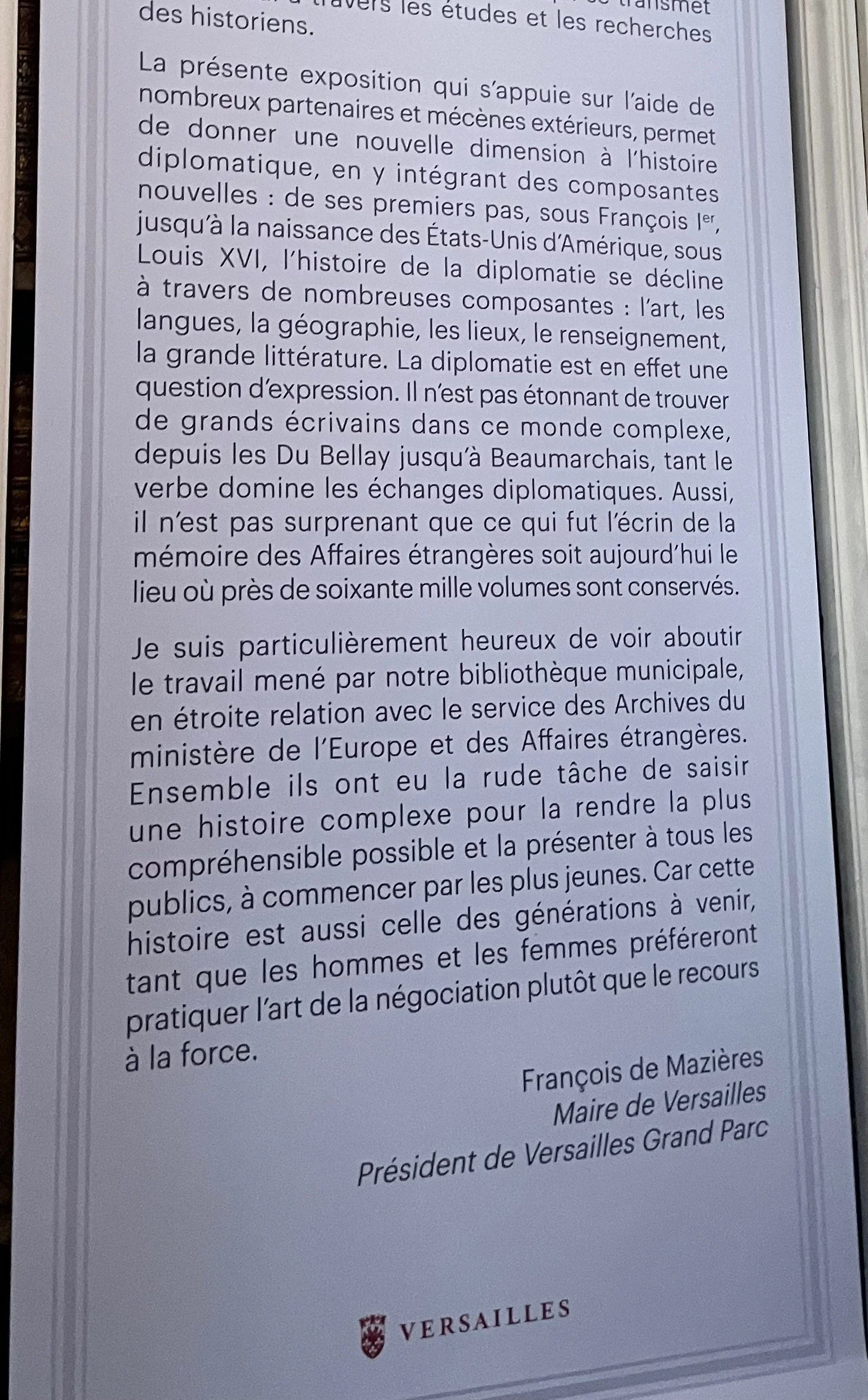 Cette exposition de la Bibliothèque Choiseul est située dans l’ancien ministère des Affaires étrangères et de la Marine de Louis XV à Versailles.