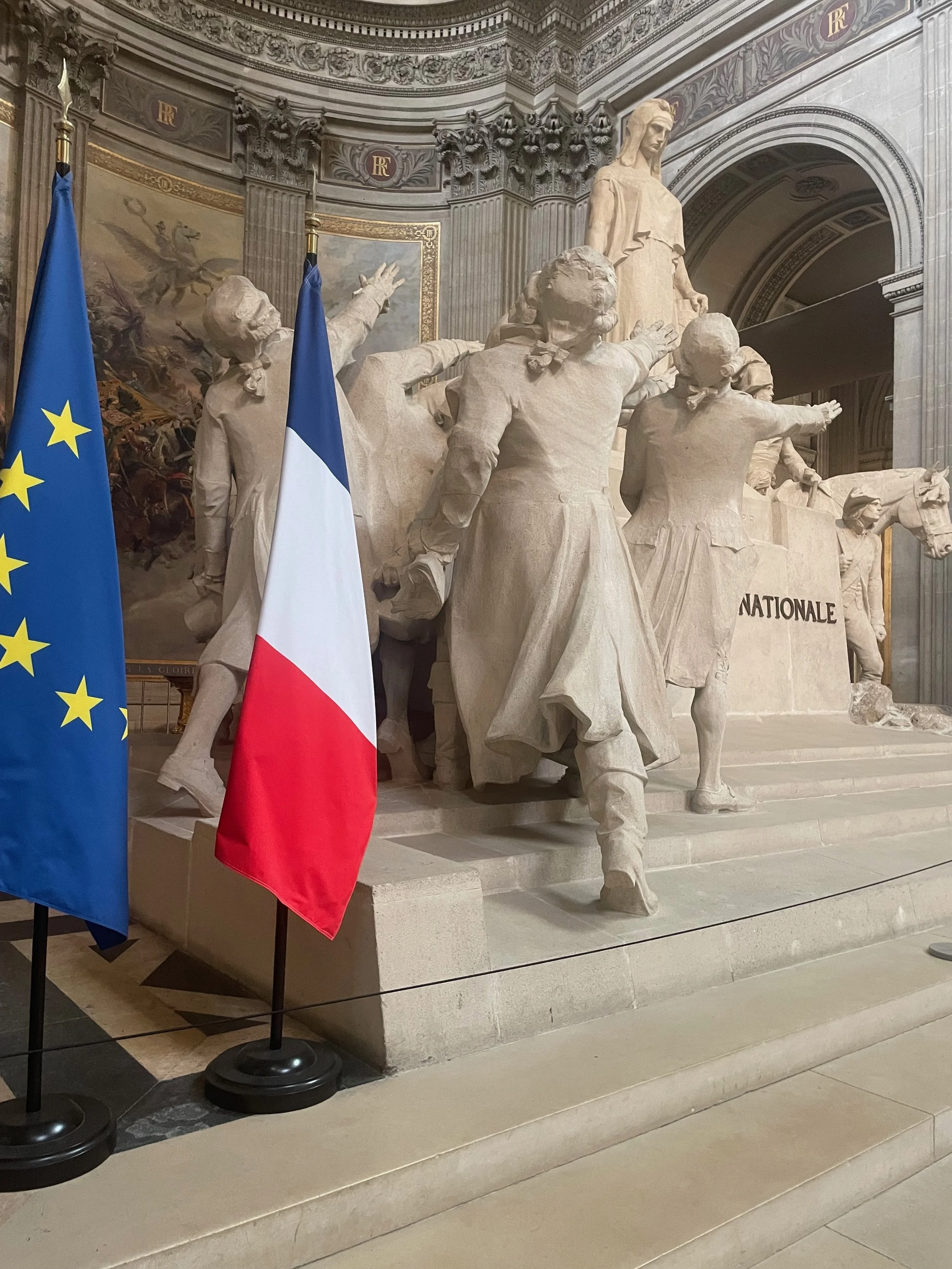Les sculptures présentes à divers emplacement sont puissantes, chargées de symboles et expressives. J’aime Mirabeau, ce génie de la parole, les bras levés apostrophant son public. J’aime Marianne, fière et imposante, donnant de la force à son peuple. J’aime l’hommage rendu à Antoine de Saint-Exupéry, pilote et écrivain. J’aime enfin les peintures de l’histoire de France. On peut y voir un roi ceint de la couronne de France d’or et portant le manteau fait de bleu, d’hermine et de fleur de lys.