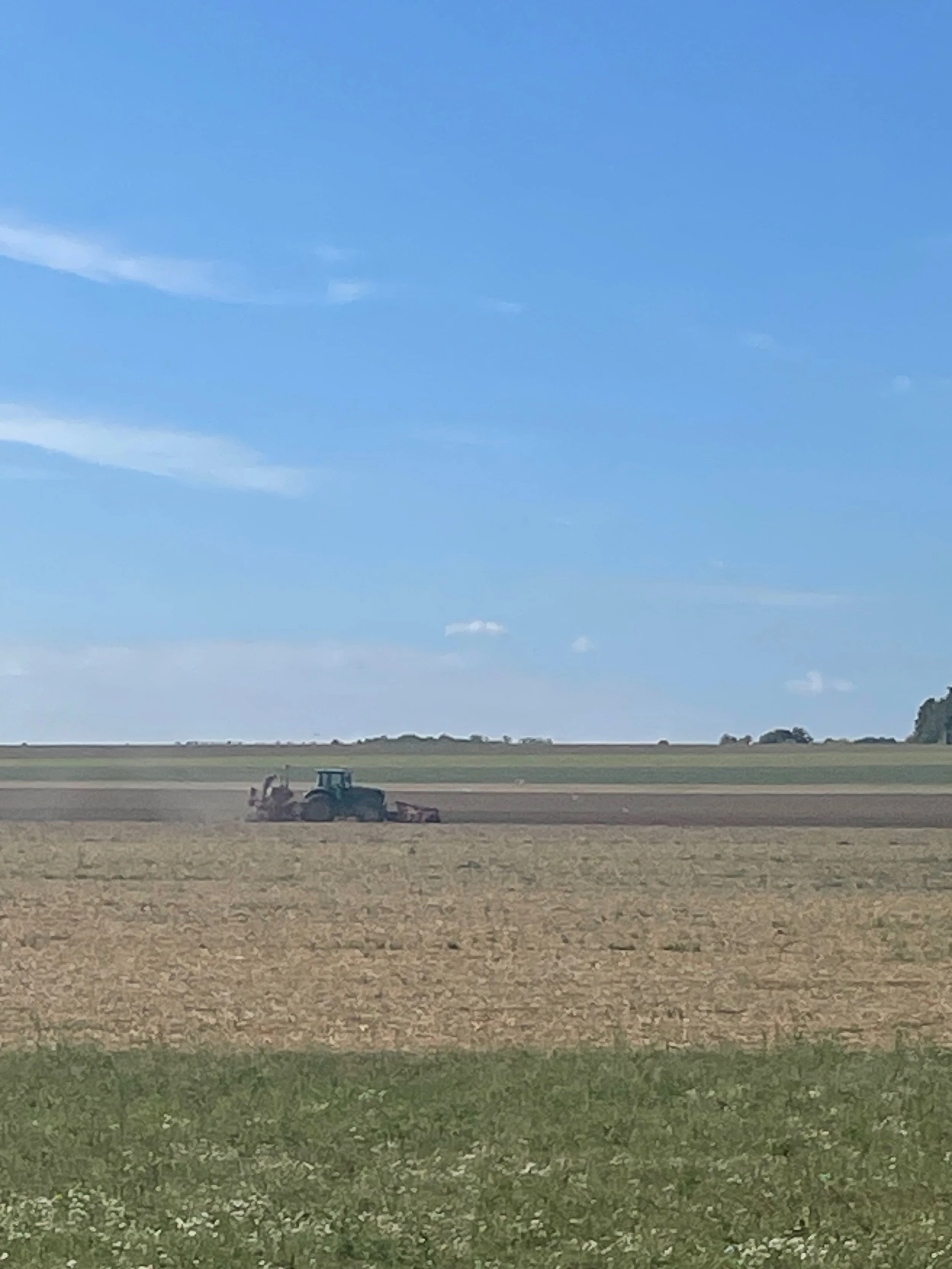 On a ensuite été devant un champ. Un agriculteur passait un tracteur ultra moderne sur une immense surface et pas loin se trouvaient de immenses granges. À la jumelle – et c’est le meilleur moment de ma visite – j’ai vu le tracteur qui avançait entouré de centaines de mouettes. C’était puissant, sublime et très poétique. Je sentais une fois encore une force : tant le travail de l’agriculteur et sa routine que l’énergie des mouettes. Quelques instants plus tard, voir ces mouettes prendre toutes la même direction puis changer avait quelque chose de fort. J’ai aussi ressenti de la nostalgie et presque une envie de m’envoler avec elles, pris d’un sentiment de liberté.