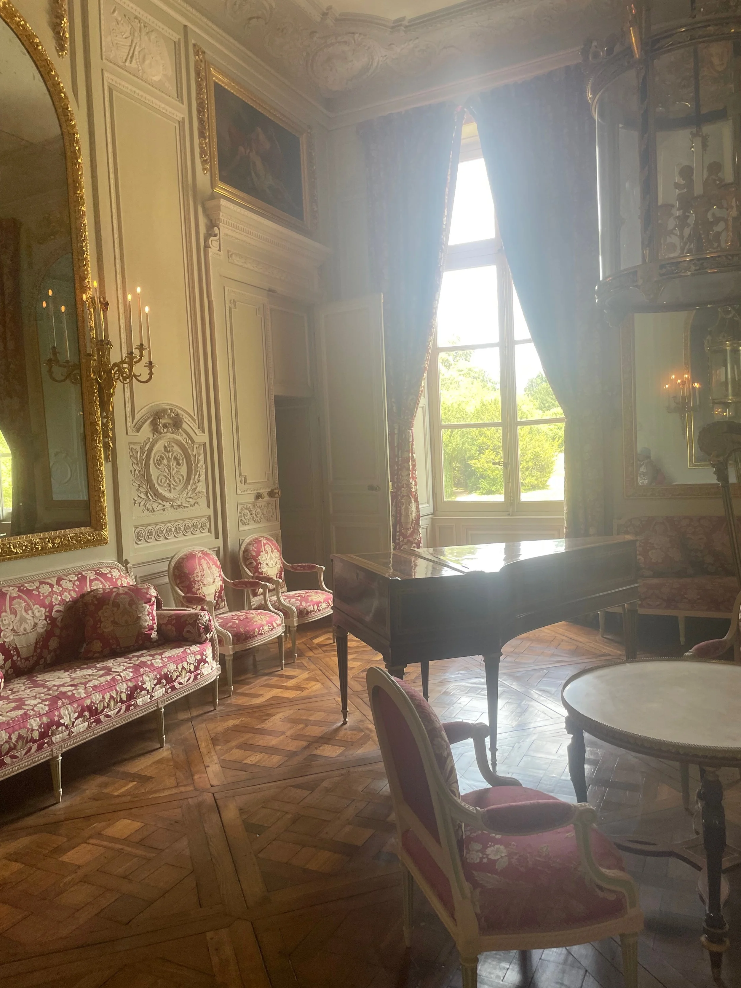 J’ai d’abord visité le Petit Trianon. Ce domaine fut un véritable havre de paix pour la reine Marie-Antoinette, issue de la famille des Habsbourg. Surnommée l’Autrichienne ou Madame Déficit par une partie du peuple, elle a dû vivre des moments de calme et de beauté entourée de sa cour. Mais cette paix fut éphémère et ses moments sur l’échafaud, place Louis XV, quelques décennies plus tard montrent que le destin des rois et des reines relève souvent de la tragédie. Le Petit Trianon est le symbole des excès que peut avoir le pouvoir mais également ceux des révolutionnaires aveuglés dans leurs actes par leur désir mimétique. Le bâtiment principal du Petit Trianon respire le style classique si français. J’ai senti, dans les couloirs et les escaliers éclairés par des lanternes versaillaises, une bribe de ce qu’a dû être la vie de la cour. J’ai comme senti le pouvoir et le luxe mais également une atmosphère propre au recueillement. Versailles, capitale d’un des pays les plus puissants du monde. Qu’ont vu ces murs de pierre et ces immenses glaces ? Quels amours innocents et machinations politiques ? Le hameau de la reine est plein d’un charme bucolique et l’on verrait presque la reine s’extasier devant ses animaux ou s’étendre sur les pelouses d’herbes folles.